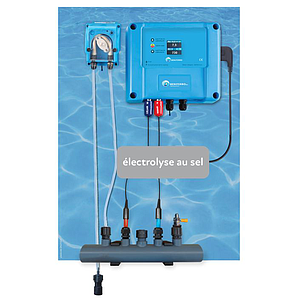 Salt electrolysis control device pre-mounted on wall plate with pH and RX control and plug for salt electrolysis of your choice - Display - with flow and level switch