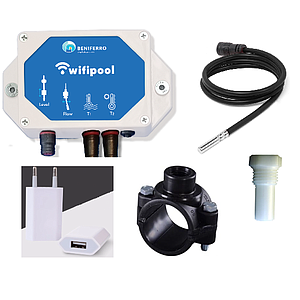 Wifipool TLF module incl temp probe + tapping saddle 50mm -> 1/2 inch + temp probe gland + USB transformer plug 1 connection complete kit
